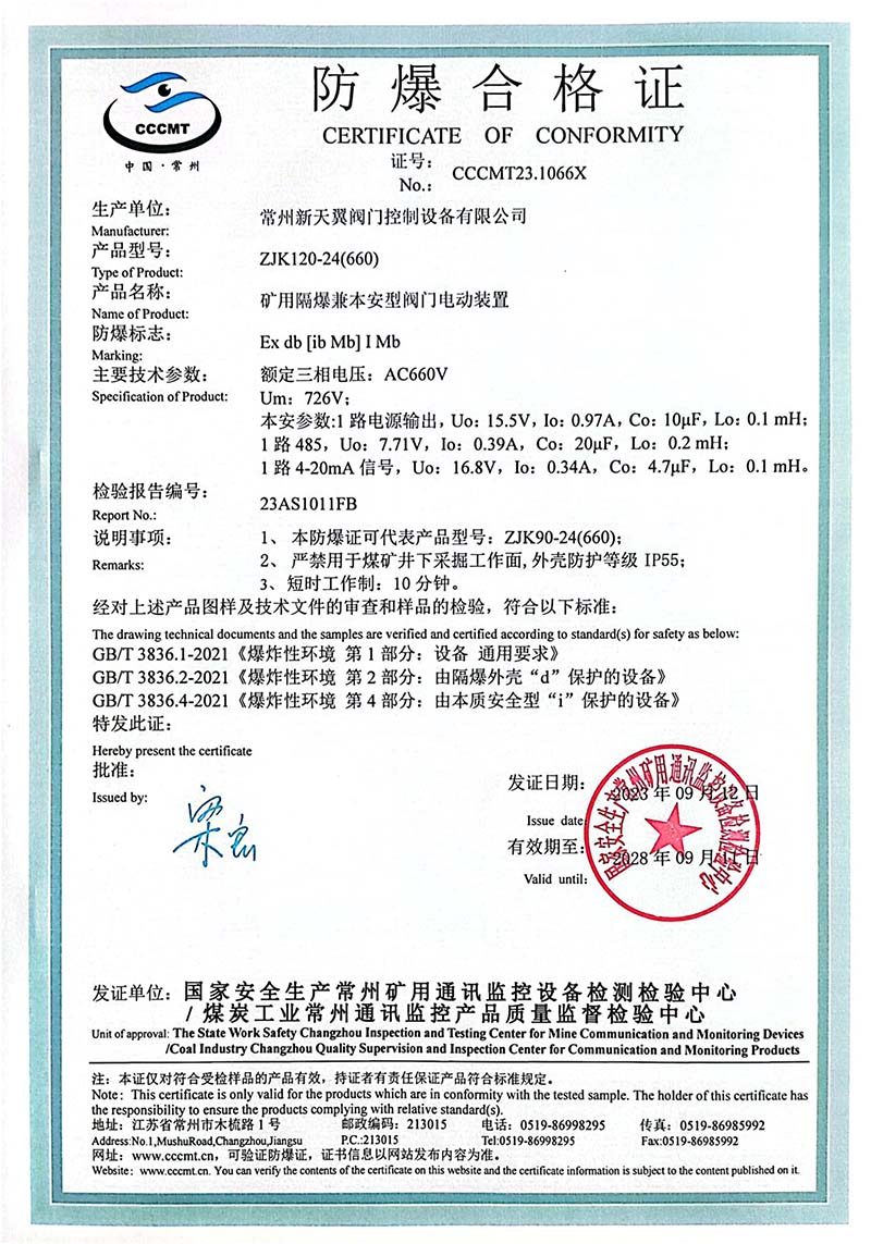 ZB20-24 200(660) 防爆合格證