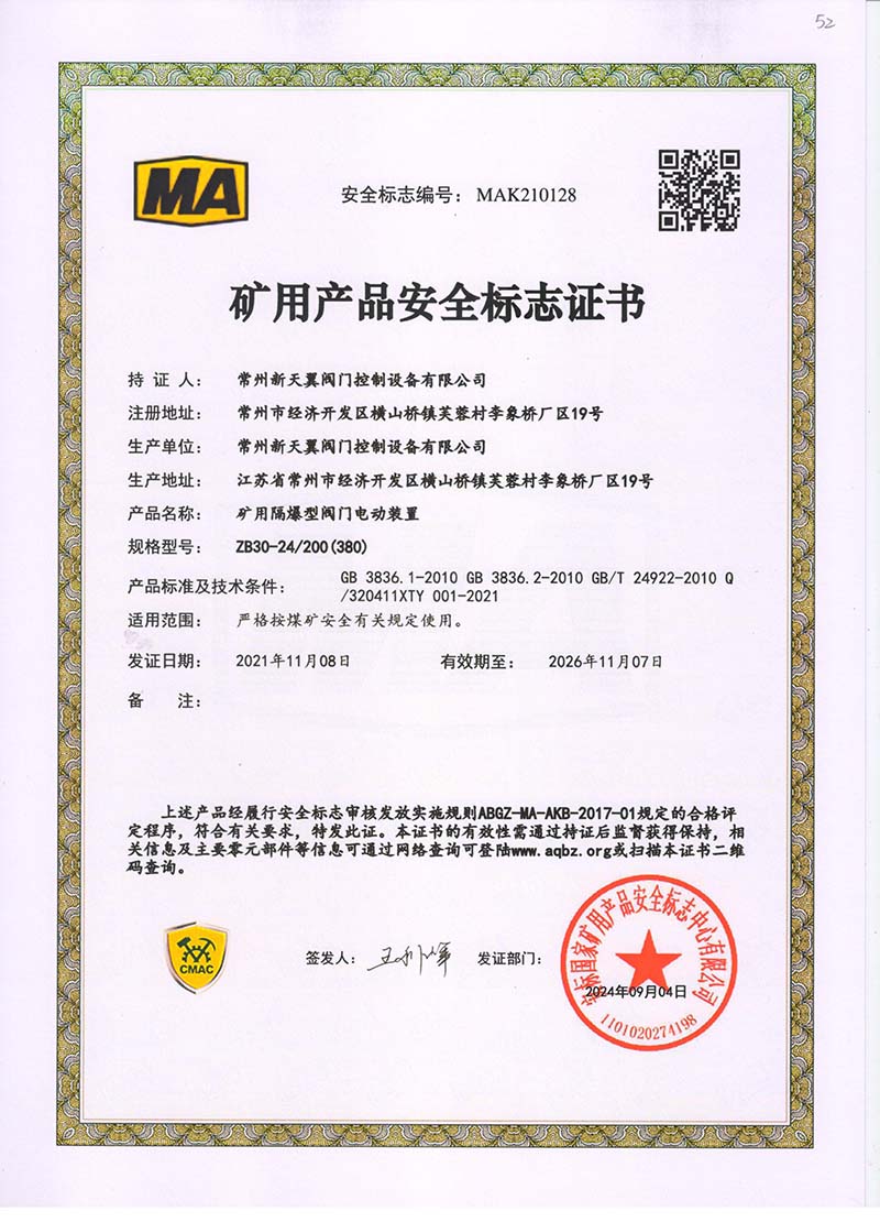礦用產品安全標志證書ZB30-24 200(660)